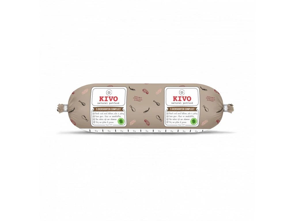 Odporúčaná denná kŕmna dávka dospelého psa: 20-30 g krmiva na 1 kg živej hmotnosti. Črevo nechajte rozmraziť v chladničke v Kivo Petfood rozmrazovacom vedierku alebo v podobnom obale. Po 15 hodinách je krmivo rozmrazené a pripravené na skŕmenie. Po rozmrazení je produkt možné skladovať v chladničke po dobu 2-3 dní.